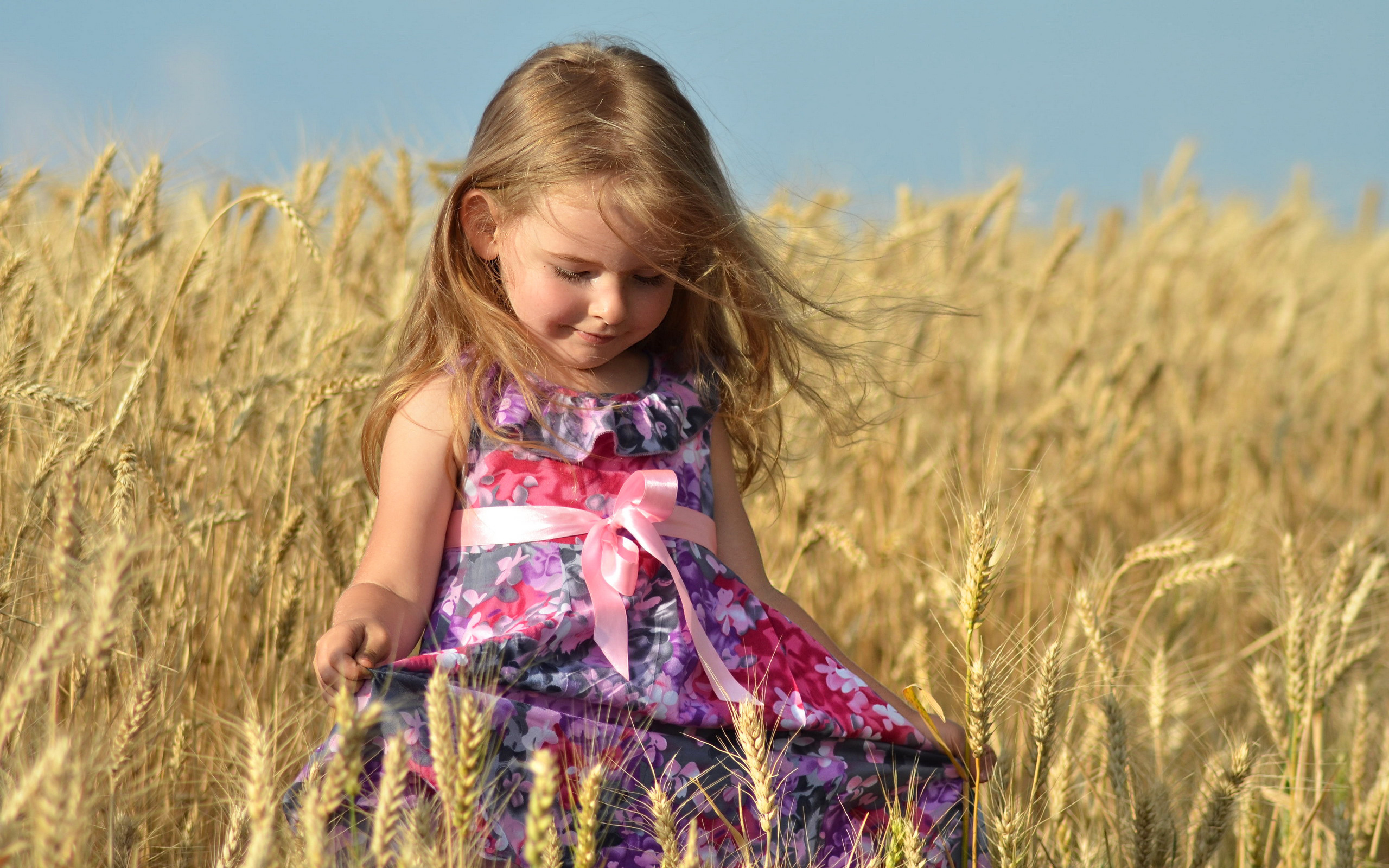 Обои пшениця, колоски, дівчинка, сукня, літо для рабочего стола.